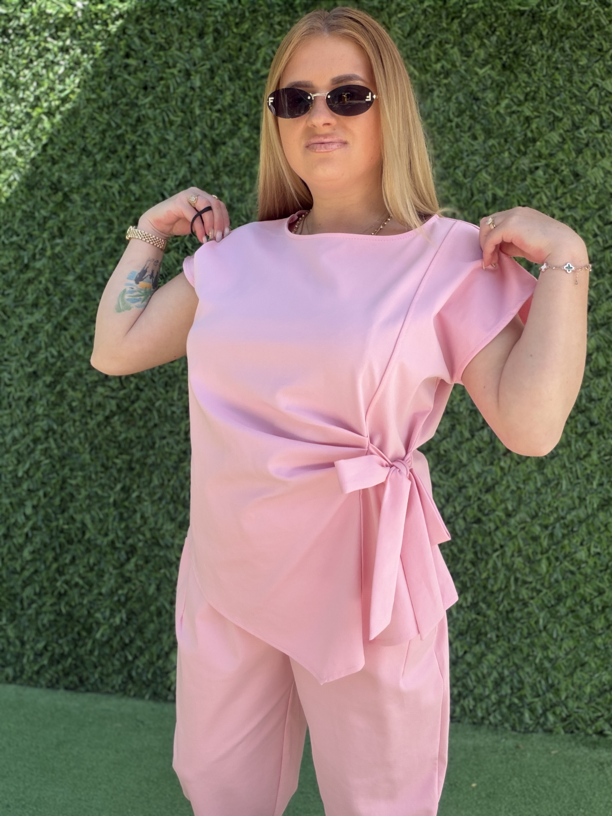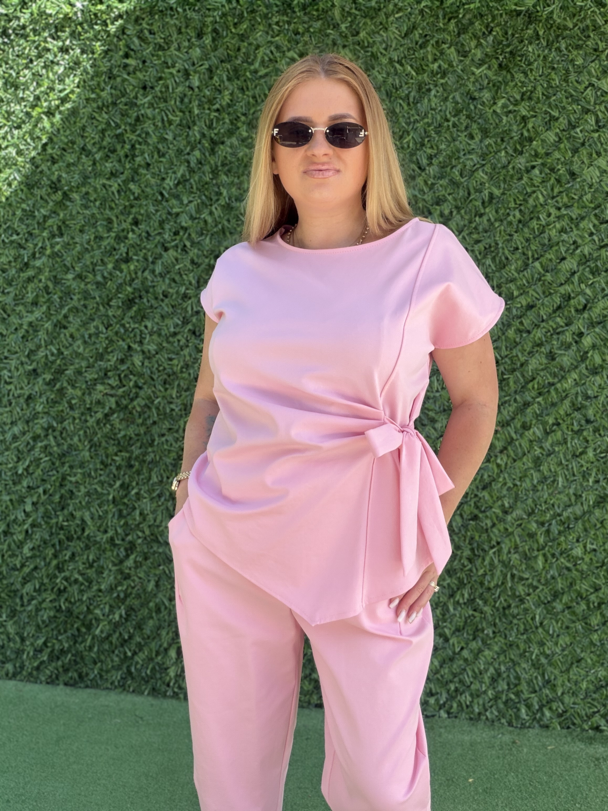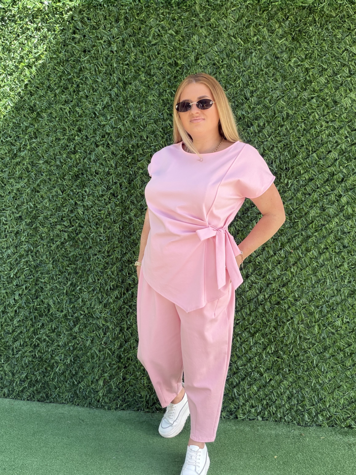 Marime universala potrivita pentru: S M L XL ( bluza merge la un bust de pana la 130 cm, lungime 70 cm, pantalon cu talie pe elastic pana la 120 cm, sold 130 cm, lungime 90 cm)
